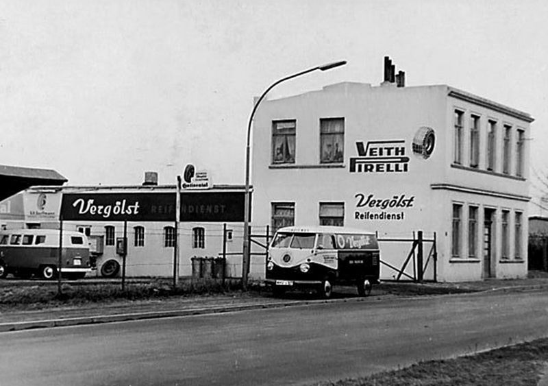 Typische Vergölst-Werkstatt in den 1960er und 70ern. Es werden durchaus viele Reifenmarken montiert. Inzwischen ist Vergölst ein Tochter der Continental AG. Foto: vergoelst.de