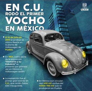 Von den Mexikanern "Vocho" genannt, hergeleitet von Volkswagen, in der Stadt Puebla 1967 geboren um Amerika zu bevölkern, aber besonders um mexikanische Familien glücklicher zu machen. Es entstand eine ganze Arbeiterstadt nahe des Werkes, sogar mit deutschen Straßennamen.