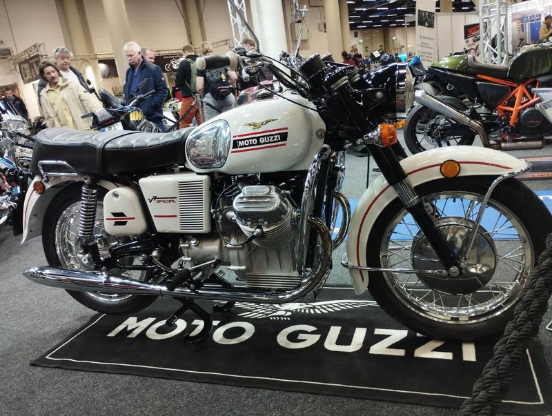 Special Custom-Show: vorn Oldstyle Classic Yamaha SR500 1978, dahinter der Kawa-Kult 78er Kawasaki Z1. Die Messe insg. über 30.000 qm und der ganzen Vielfalt der Motorrad-Szene. Aktuelle Modelle, Zubehör, Bekleidung, Fanartikel. Ob Chopper-, Sportler-, Roller-, Touren- oder Endurofahrer ... Foto: radio-oldtimer.com