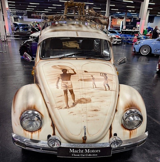 Schönes Beispiel für optisches "Tuning". Beeindruckendes AirBrush des VW Käfer am Stand von "Macht Motors - Classic Car Collection". Foto: C. Marciniak