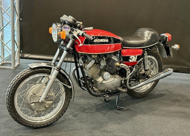 Noch eine Spezialität: Moto Morini 3 1/2 Sport, Baujahr 1975, 2-Zyl. 4-Takt 344 ccm und 39 PS. Die Besonderheiten: V-Motor mit Heron-Brennräumen, die im Kolbenboden untergebracht sind. Außerdem das erste Motorrad mit Nockenwellenantrieb über Zahnriemen. Kult! Foto: C. Marciniak