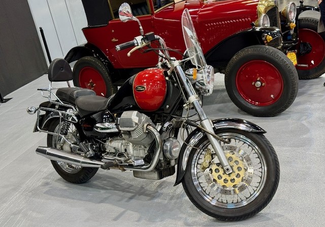 Manchmal vergessen, aber es ist auch eine Messe für die Motorrad-Fans! Hier fast wie Italo-Western: Moto Guzzi California Spezial Sport 1100. Sondermodell „80 Jahre Moto Guzzi“ Erstzulassung 2001. 1064 ccm Hubraum und 76 PS, angeboten für 5.900,- Euro. Foto: C. Marciniak