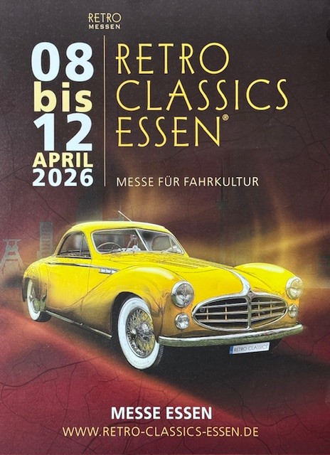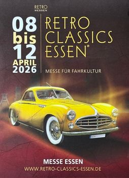 Mittwoch, 8. bis Sonntag, 12. April 2026 - Die Retro Classics Essen, Messegelände. Alle Infos, sowie Karten unter www.retro-classics-essen.de