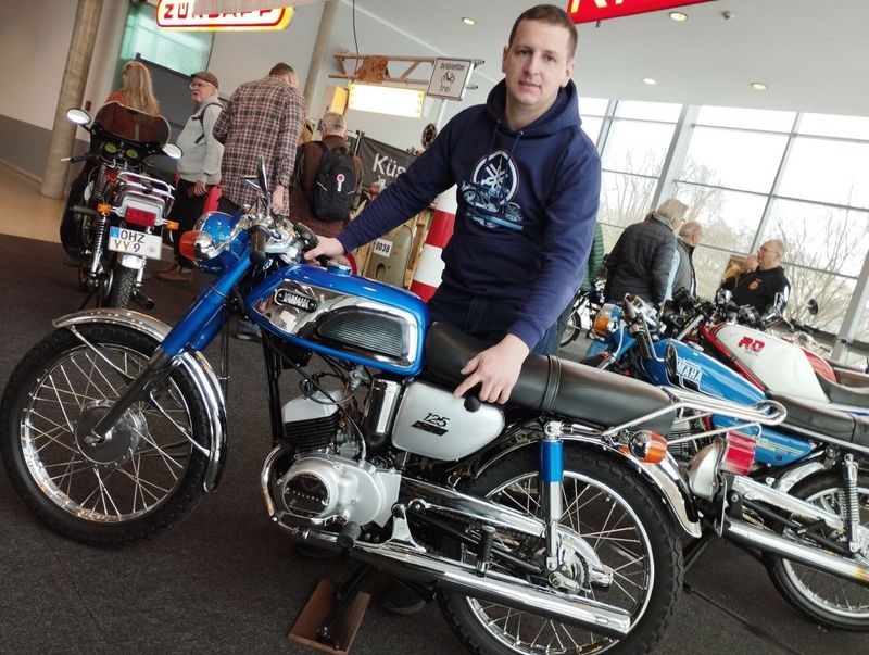 Alles selbst aus "Note 6" in eine "1" umgebaut: 125er Yamaha, Bj. 68. Der 32-jährige Fabian ist eigentlich Tischler, aber mit enormen Technikfähigkeiten. Und Organisation. Teils kaufte er nötige Teile in Indonesien! Foto: radio-oldtimer.com