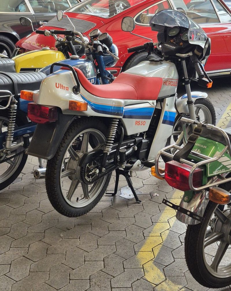 Spitzenmodell: Die Hercules Ultra RS 50 markiert die letzte Ausbaustufe der Kleinkrafträder mit 50 Kubikzentimeter Hubraum im Jahre 1981. Ab 1982 wurden die Modelle durch den Gesetzgeber, vornehmlich aus Geräuschgründen, auf 80 Kubikzentimeter umgestellt. Die RS 50 wies mit 8,3 gegenüber 6,25 PS nicht nur eine größere Leistung, sondern auch ein Sechsganggetriebe auf. Maximal 6,25 PS und Fünfganggetriebe waren bis zu diesem Modell bei allen Herstellern üblich gewesen. Foto: Dietz