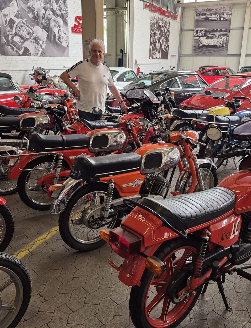 Daneben aber gilt seine Begeisterung der Sammlung von Kleinkrafträdern der 70er Jahre. Weit über 100 (!) Fahrzeuge hat Wagner in über 30 Jahren gesammelt. Dabei ging es ihm in erster Linie um die Restaurierung und das Zeigen der Kleinkrafträder. Ob frühe Zündapp KS 50 Watercooled von Anfang der 70er Jahre oder High-End-Versionen wie die Hercules Ultra RS 50 - Joachim Wagner hat diese Modelle, von denen er einige in seiner Jugend selbst besaß, in liebevoller Kleinarbeit zusammengetragen und teilweise auch restauriert. Einige wenige der Fahrzeuge befinden sich sogar noch in Originalzustand. Aufgrund zunehmender Raumprobleme denkt er gerade darüber nach, wie er die Fahrzeuge künftig präsentieren kann - oder ob er sie "en bloc" verkauft.