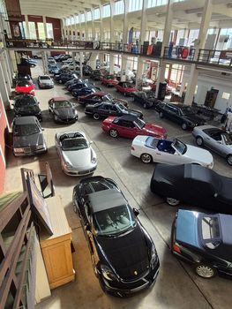 Jeweils rund 80 Klassiker und Sportwagen aller Art präsentiert Firmeninhaber Jan Hinrichs in einem historischen Gebäude. Kunden haben hier auch die Möglichkeit, ihr Traumfahrzeug auf dem weitläufigen Gelände einmal zu testen.